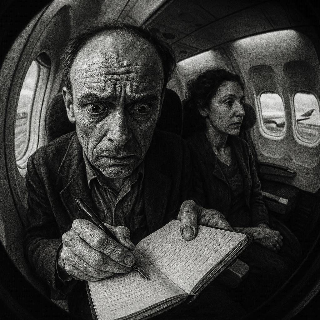 24.9. Kl. 10.57. Føler mer avstand til skogen i vinduet etter tur retur den store verden, en verden som ikke virket så stor, ikke med fly; et ganske flatt landskap sammenlappet av åkre og sikksakksømmet av elver. Ser man bort fra litt alper og sjø her og der så strakte det seg likt helt frem til stranden i Rimini –...