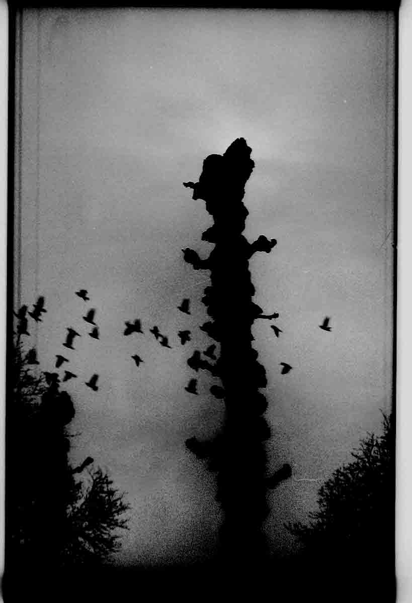 23.12. Kl. 12.25. Ser ut. Det første tynne laget med sne har falt, sne, se det, sent men godt. Lyset er en annen form for mørke, solen er et minne, sommeren enda mer, det føles stille der ute, med ørsmå jetfly i tomheten, etternølere fra den grå himmelen, på vei til flyplassen; min veranda. Tygger i meg en skive...