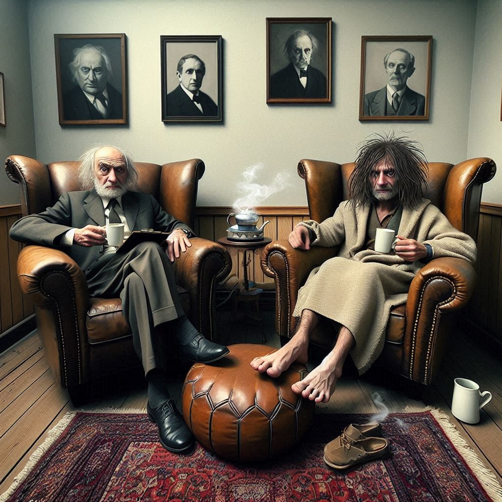 Og i dagbøkene skrev jeg at det noen gang føltes som om det satt en annen pasient mellom oss, den han trodde jeg var. Du kunne ikke si alt til den lille korthårete mannen. Han var den typen som ble mørk om du ble mørk, skitten om du blotter deg. Han søkte harmoni. Han så ingen grunn til å gå ned mine kjellertrapper, det var kaldt og trist der nede. Jeg skrev at vi lekte psykolog og pasient. At det ikke var the real thing. Jeg skrev at vi kastet bort tiden. Men det var ensidig, jeg glemte kontakten vi hadde. Han bød meg kaffe og et rom med persisk teppe, et mellomrom, et arkimedisk punkt midt i oslolivet.