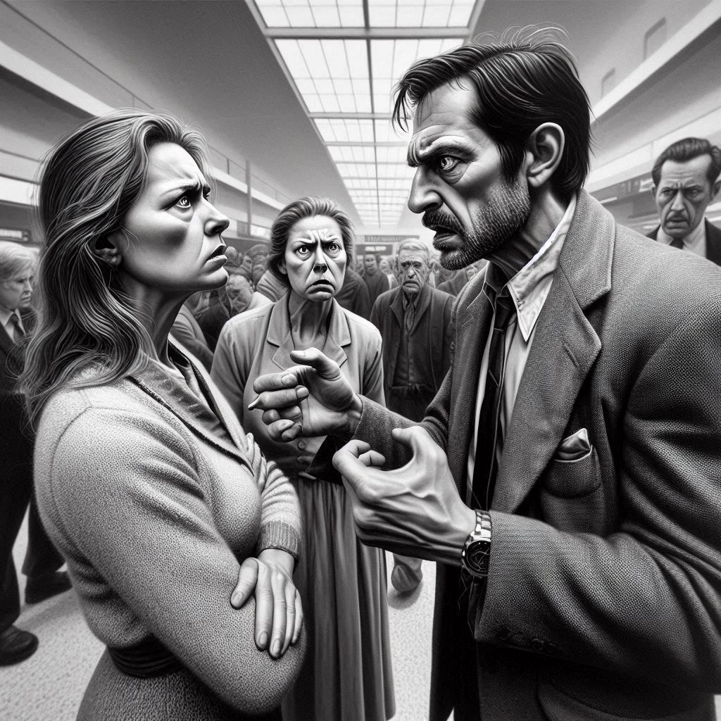 Og jeg blir rasende igjen. Roper tilbake. Høyt nå. Dette er jo pinlig. En eldre dame ser på meg, øynene smalner av hat, dette gjør meg utrolig usikker, hun må ha opplevd en vanskelig ektemann. To fiendtlige damer på engang, det blir mye. Nå må jeg ta meg sammen. Men nå freser K og veiver med armen. Den eldre støtter henne med et bekreftende, og jeg vil si, hevngjerrig blikk. Hvorfor freser K? Fordi jeg sier at når det er seks kilometer til busstasjonen fra flyplassen i Bologna, da kan vi jo taxi. Men hvorfor gjør dette henne rasende? Fordi det er en selvfølge vel.