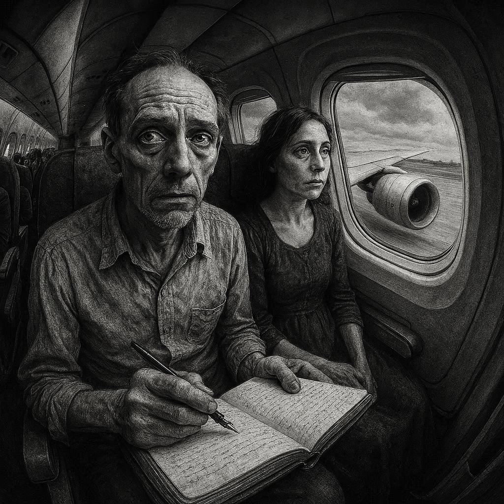 Vi får snart et gjensyn med flyplassen fra i sommer, om vi når så langt. Får bare håpe at ikke spådommen til hode-stemmen ikke gjelder på denne flyturen. Nå klør en astmatisk oxfordstemme i øregangene: