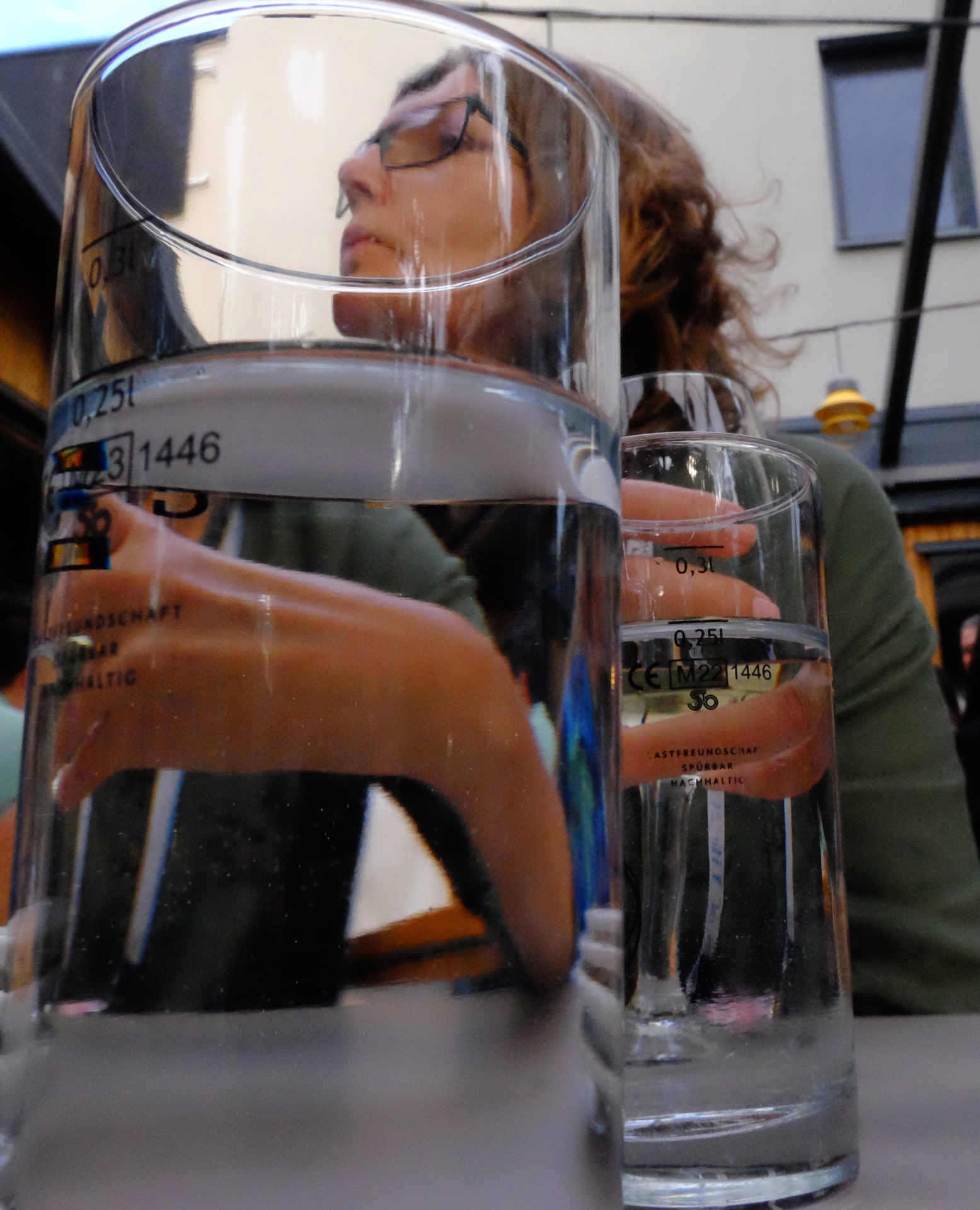 K spiste stekt lever og rosiner med rødvin, jeg spiste spagetti med kantarellsaus og drakk østerisk hvitvin, vi tygde i oss nystekt mat fra gamle oppskrifter, vi trakk inn lukter og lyder fra en restaurant fra før keiser Franz Josef var påtenkt.